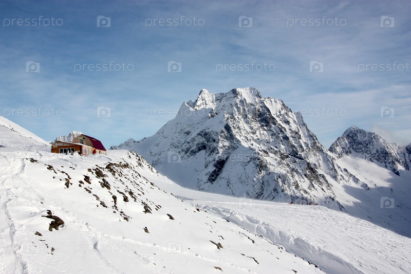 Гора и одинокий дом зимой