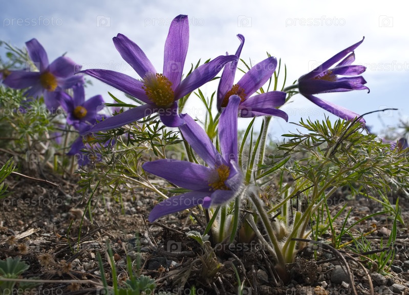 Россия. Юг Западной Сибири. Открытый выстрел (Спящая трава) - первые весенние цветы на каменистых склонах гор Алтая
