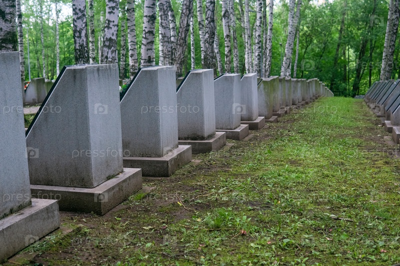 Могилы на военном кладбище среди берез