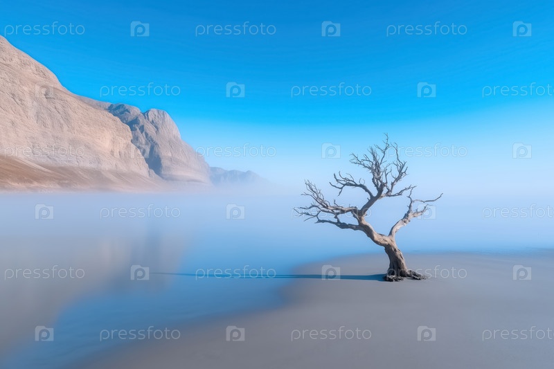 Одинокое дерево на озере в пустыне