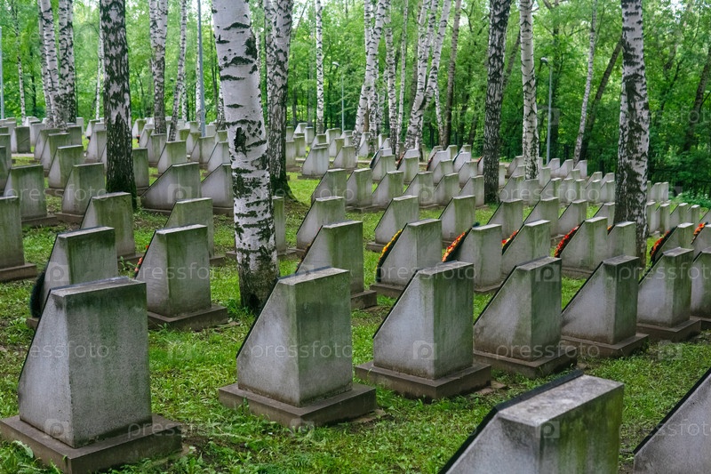 Старый мемориальный военный кладбище с надгробиями