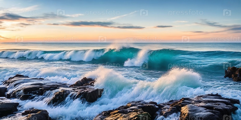 Скалы, поднимающиеся над береговой линией. Панорама. Генеративная ИИ