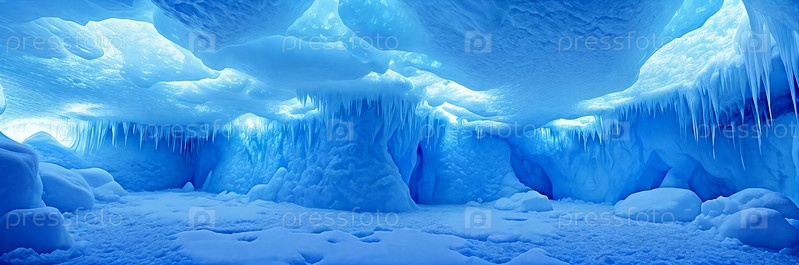 Эфирная ледяная пещера, освещенная мягким светом биолюминесцентных кристаллов, излучает жутко синий свет