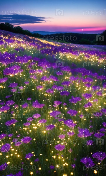 В сумерках цветет луг с флуоресцентными цветами.Каждый лепесток содержит звездную пыль, и когда наступает ночь, они высвобождают свою магию.Дальнеземное сияние и обещание желаний