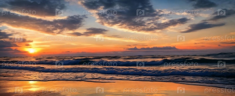 Блестящие волны отражают теплые тени заходящего солнца, создавая захватывающую сцену