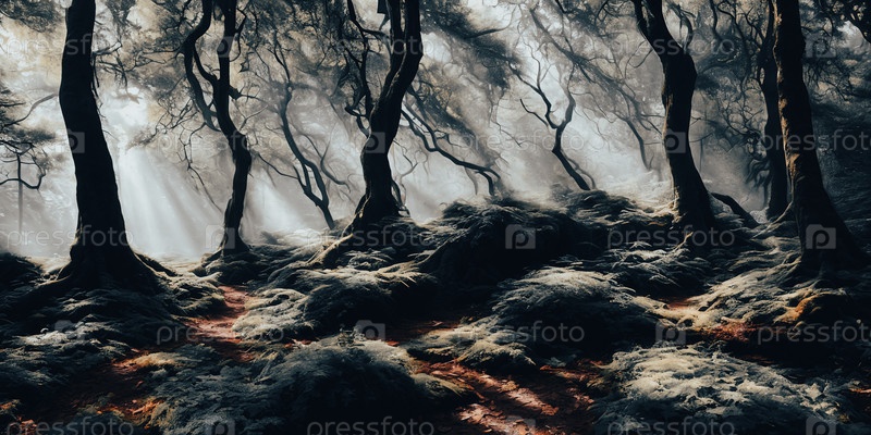 Появляется загадочный лес.Солнечные лучи проникают сквозь плотный навес, открывая мистическое царство.Тени танцуют, шепчут эхо, исследуют соблазнительно.Генеративная ИИ