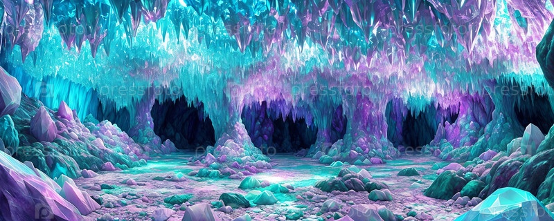 Кристальная пещера, подземный мир, наполненный блестящими кристаллическими образованиями