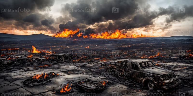 Разрушенные пейзажи, катастрофа сгоревшей земли