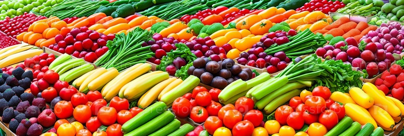 Яркий рынок. Свежие фрукты и овощи на местном рынке. Цвета, формы и разнообразие продуктов доступны. Генерация ИИ