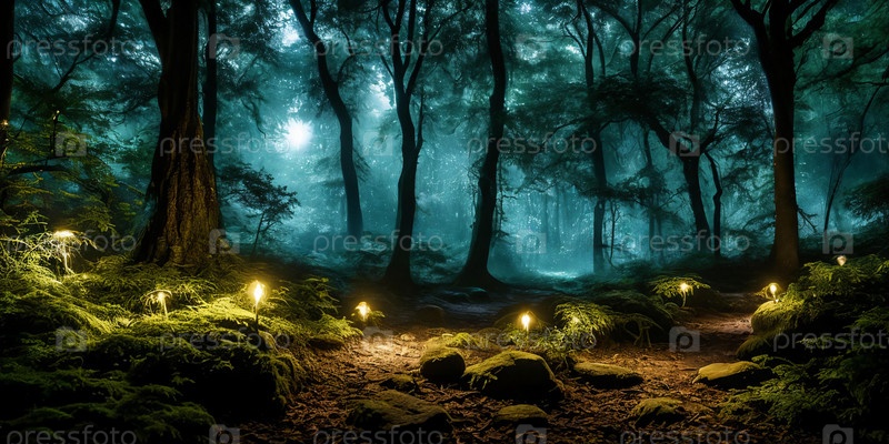 Среди древних деревьев лунный свет освещает скрытую поляну. Грибы, поцелованные росой, светятся мягко, а светочки танцуют ночью. Эфирная красота этого мистического места встречи