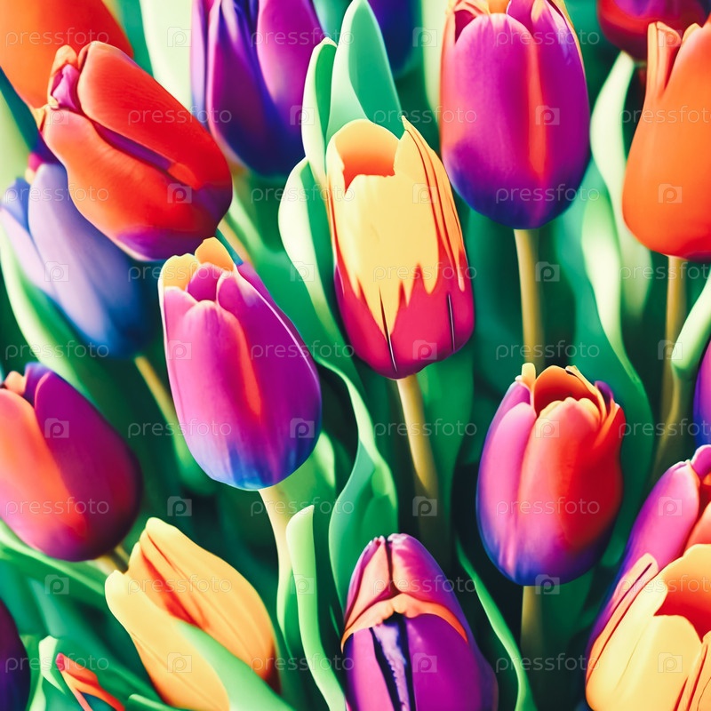Яркий фон весенней тематики со множеством красочных тюльпанов
