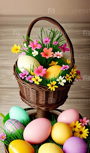 Утонченный дизайн пасхальной открытки с множеством красиво украшенных яиц. Пасхальная посадка