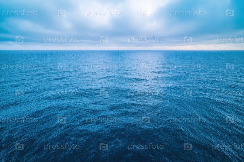 Морской пейзаж с глубоким голубым морем и облачным небом