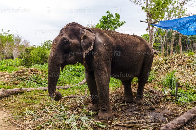Тайская деревня. слон поселится на ясной местности