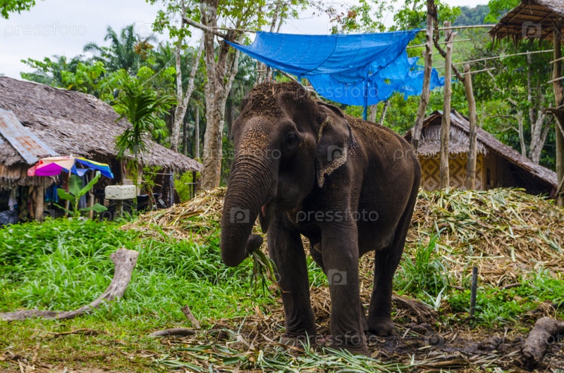 Тайская деревня. слон поселится на ясной местности