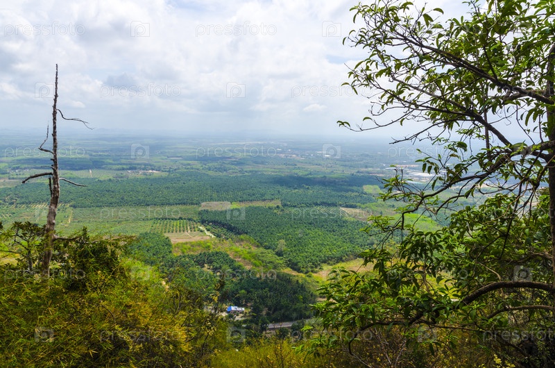Вид с горы на поля в южном Таиланде