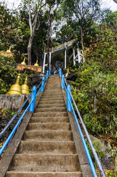 Лестницы в гору в буддийском монастыре.Южный Таиланд