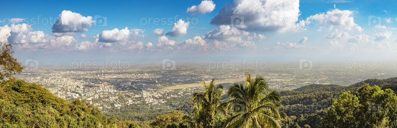 Потрясающий вид на городской ландшафт Чиангмая с выставочной точки. Панорама. Таиланд
