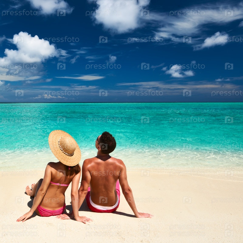 Пара на пляже в Мальдивах