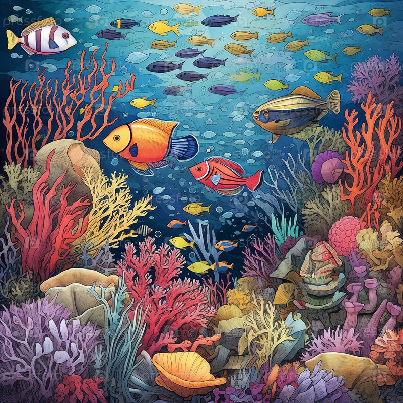 Подводный ландшафт с коралловыми рифами и тропическими рыбами