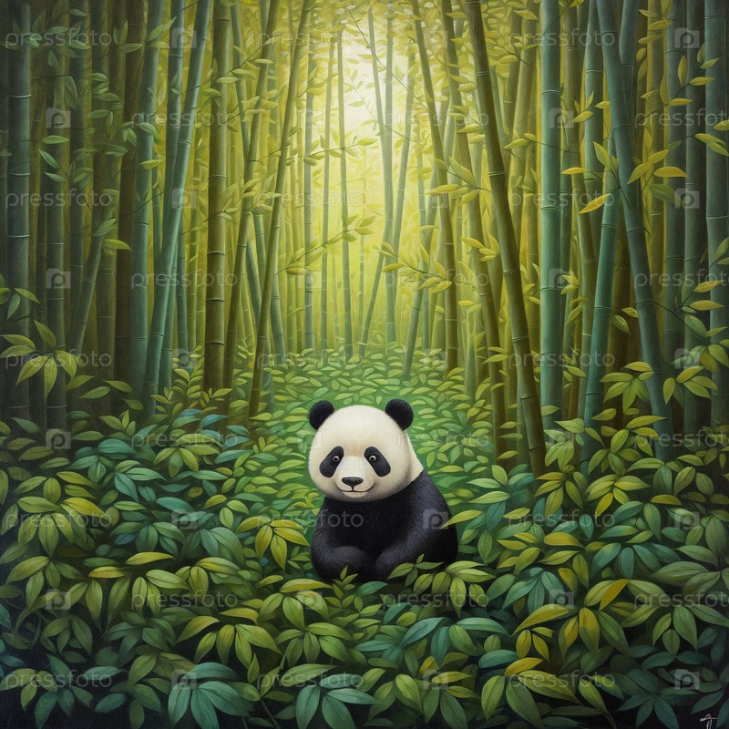 Иллюстрация симпатичной панды в бамбуковом лесу