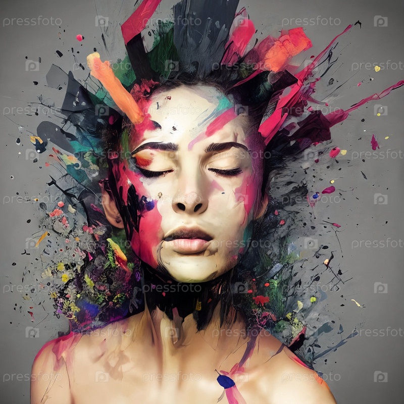 Портрет женщины с закрытыми глазами от распылания краски