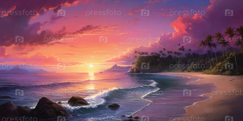 Впечатляющий вид на пляж с розовым песком при закате солнца