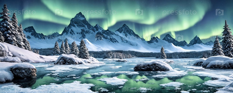 Замороженная планета тундры, холодный ледяной мир Панорама генерация ИИ