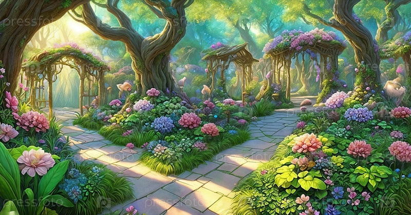 Зачарованный сад, наполненный фантастической флорой и фауной, сияющими цветами