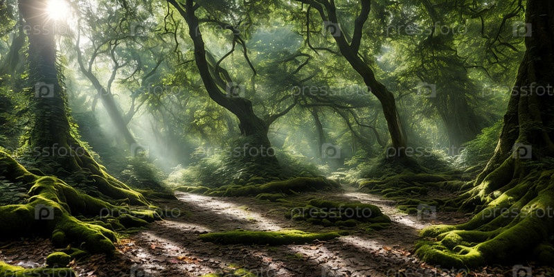 Появляется загадочный лес.Солнечные лучи проникают сквозь плотный навес, открывая мистическое царство.Тени танцуют, шепчут эхо, исследуют соблазнительно.Генеративная ИИ