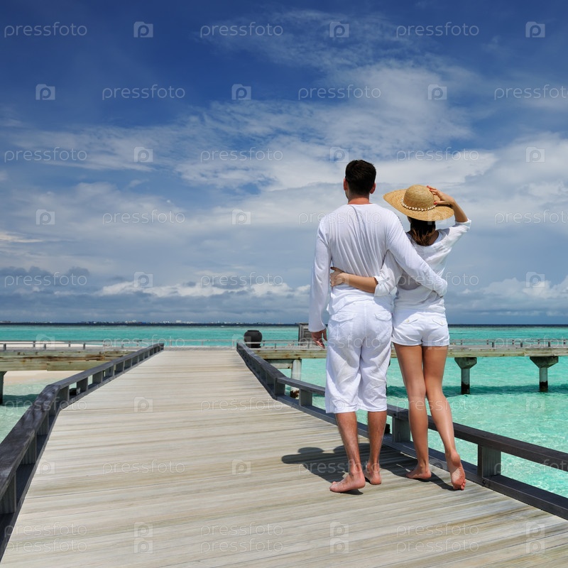 Пара на пирсе на Мальдивах