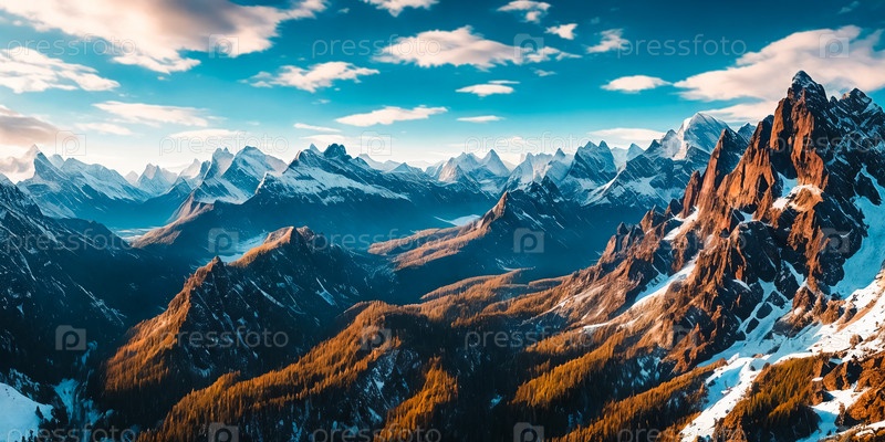 Снежные горные вершины под обширной панорамой неба