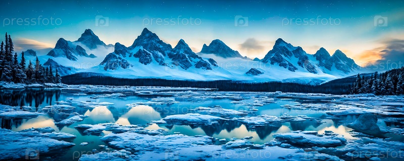 Замороженная планета тундры, холодный ледяной мир Панорама генерация ИИ