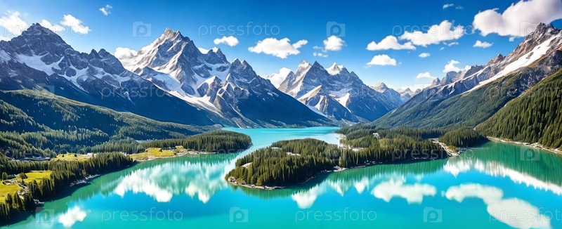 Спокойное озеро на переднем плане отражает в фоне величественную заснеженную гору