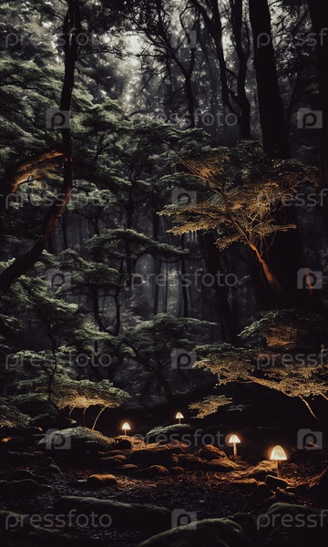 Среди древних деревьев лунный свет освещает скрытую поляну. Грибы, поцелованные росой, светятся мягко, а светочки танцуют ночью. Эфирная красота этого мистического места встречи