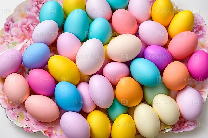 Пасхальная палитра. визуально приятная композиция с градиентом пасхальных украшений, таких как акценты яиц, расположенные эстетически привлекательным образом, излучая мягкую и мечтательную атмосферу