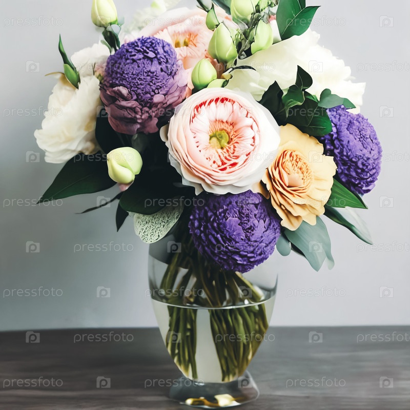 Яркий букет весенних цветов, расположенных в стильной вазе
