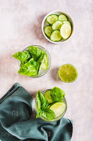 Низкоалкогольное освежающее травяное спа-сало в столешничных бокалах и вертикальном внешнем виде