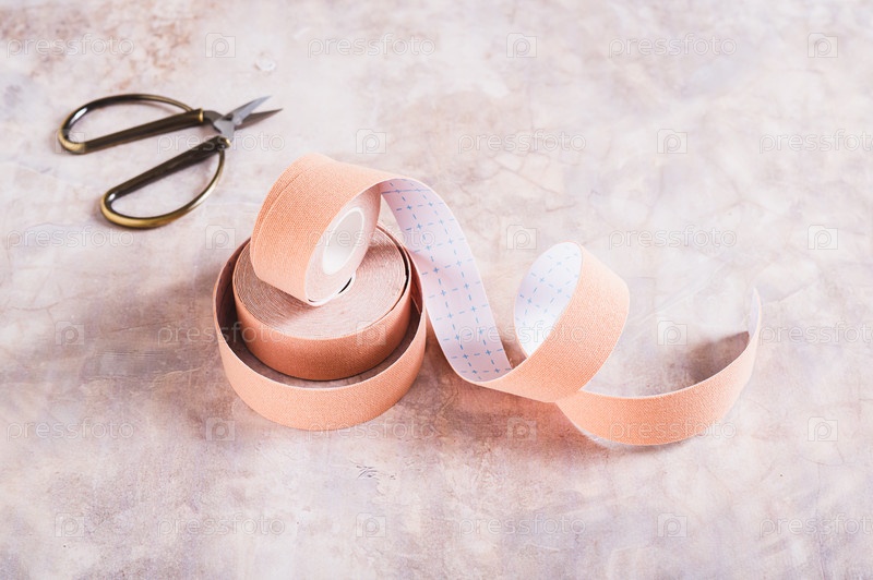 Бежевые специальные физические ленты для лица и тела на столе