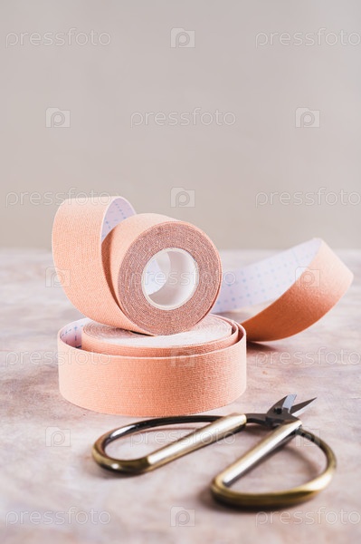 Нейтральные цветные кинезио ленты для подъема лица и ножницы на веб-баннере стола
