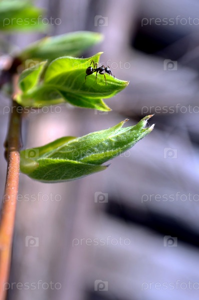 Муравьи на молодом побеге ивы