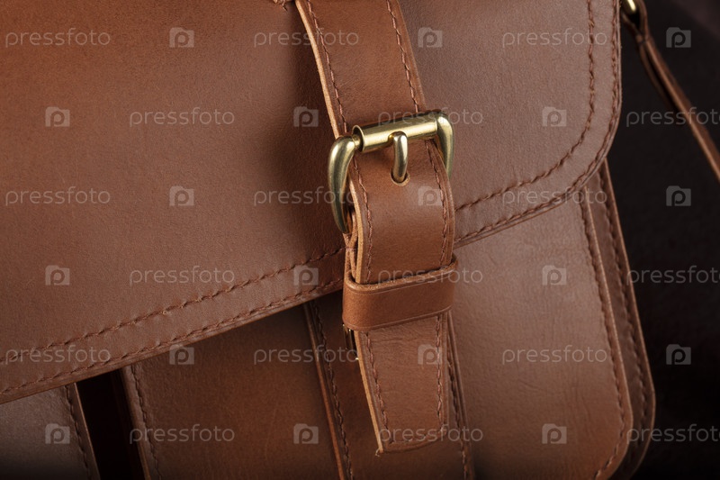 Часть коричневой натуральной кожаной сумки с металлическим застежкой