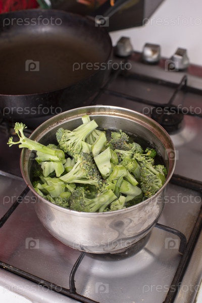 Брокколи готовы для мелководья в кастро с водой