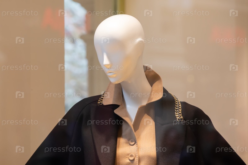 Женский манекен в витрине магазина в элегантной классической одежде
