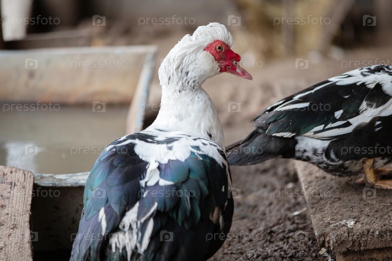 Птицы на ферме, несколько мускусных уток в амбаре