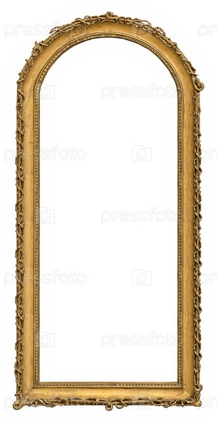 Золотая панорамная рама для картин, зеркал или фотографий, изолированных на белом фоне