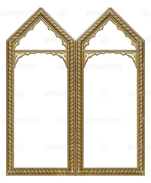 Двойная золотая готическая рама (диптих) для картин, зеркал или фотографий, изолированных на белом фоне