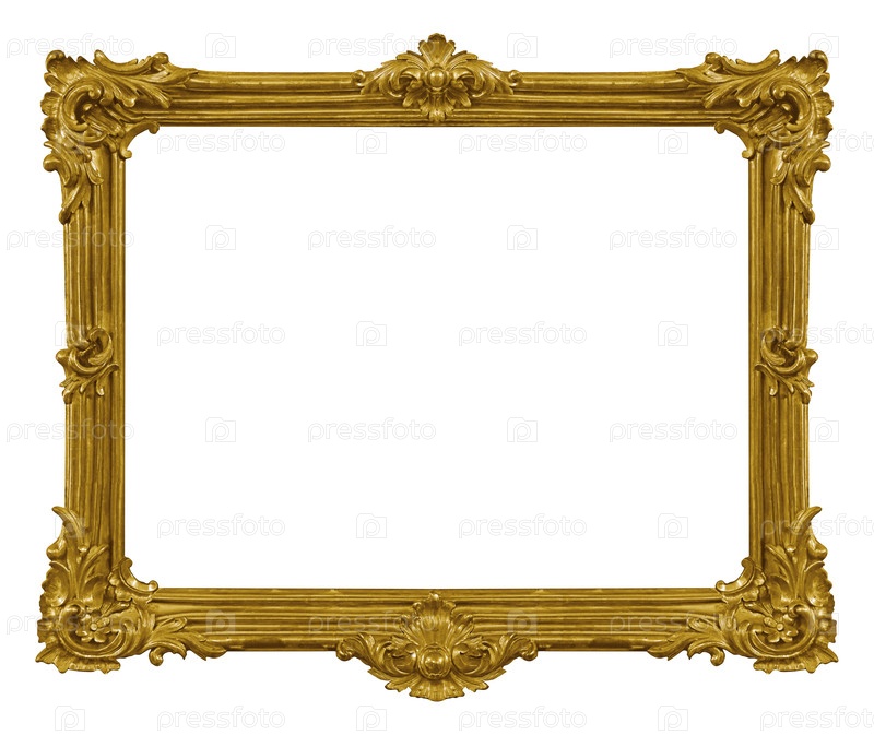 Золотая рама для картин, зеркал или фотографий, изолированных на белом фоне