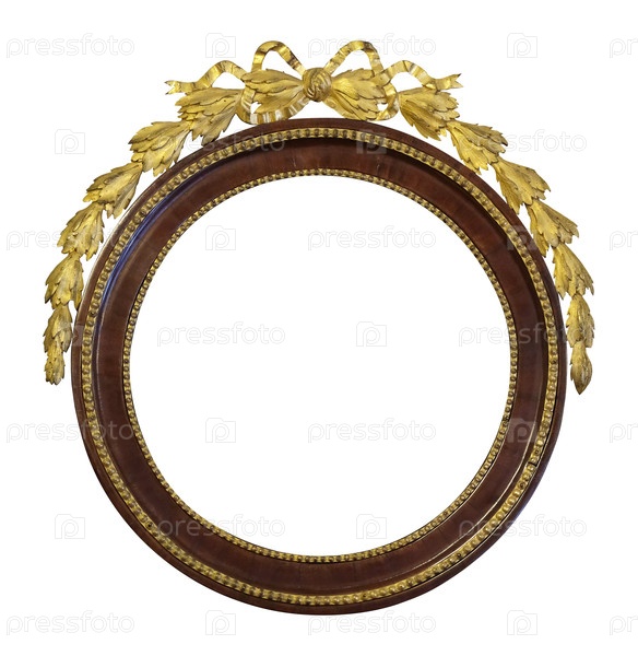 Золотая круглая рама для картин, зеркал или фотографий, изолированных на белом фоне
