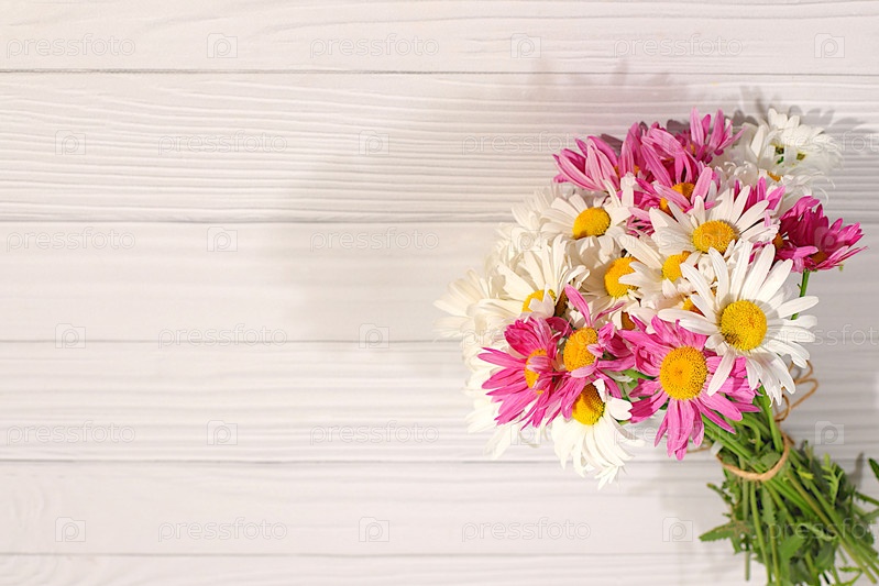Букет красивых цветов садовой ромашки и мальвы на деревянном солнечном фоне, рекламный баннер весенних и летних продуктов, абстрактная цветочная аранжировка, открытка с местом для текста